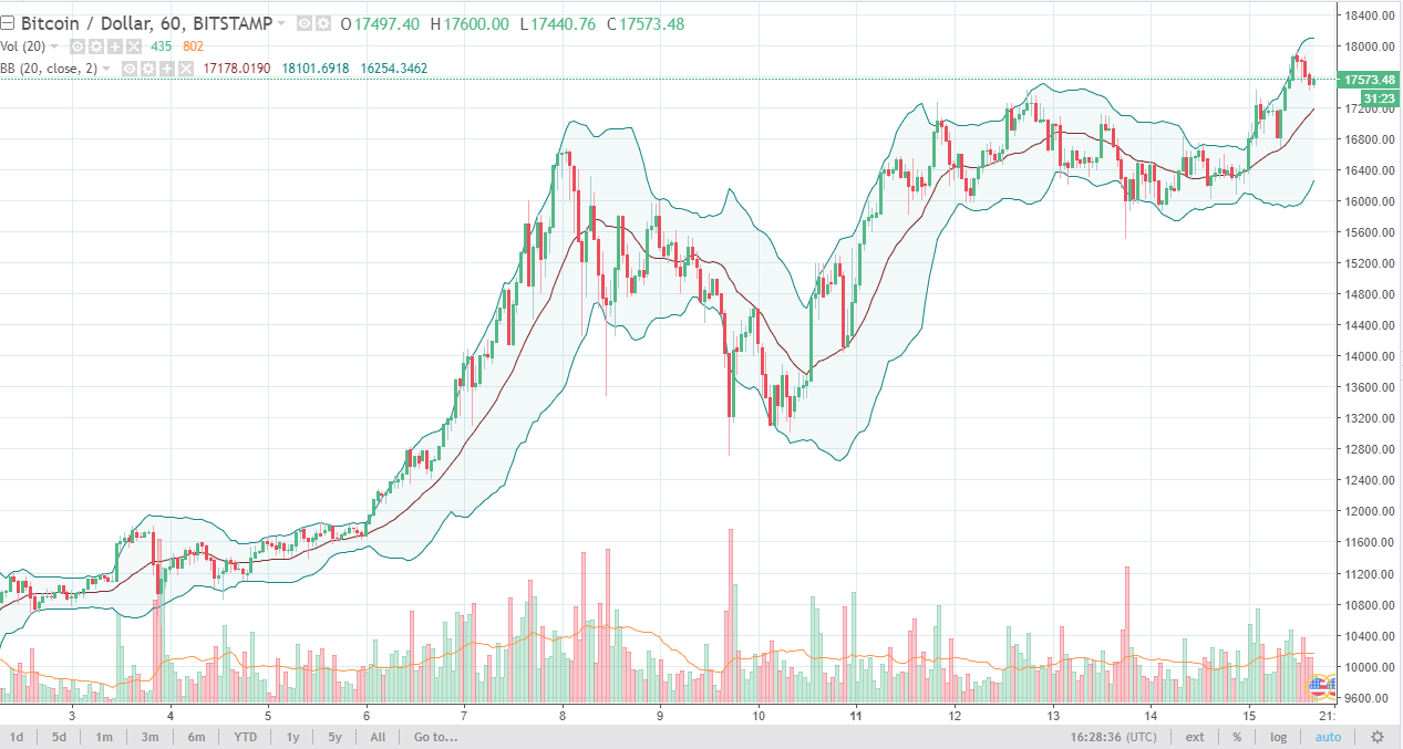 Bitcoin continues to be very bullish, reaching the $18,000 level during the trading session on Friday. At this point, it looks as if we continue to grind our way to the 20,000 handle.