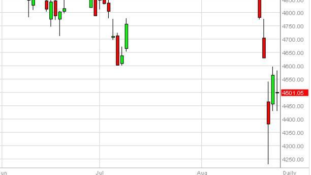 Looking at the Parisian index, you can see that we had a volatile back and forth type of session. However, we close basically unchanged, as far as the range is concerned. We did gapped at the beginning to the downside, and then just went back and forth. We continue to hug the €4500 level, so at this point in time we feel that the market is trying to build up enough support to go higher, and we probably have several sessions work through this. With this we are on the sidelines, but we are looking for a buying opportunity. We will keep you updated.