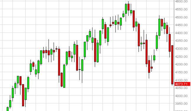The Parisian index fell hard during the course of the week, slicing through the €4100 level and looking very likely to continue going lower. With that, we