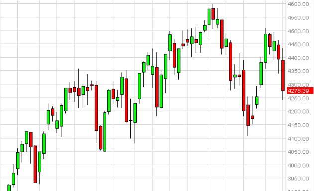 The Parisian index fell during most of the week, testing the €4250 level for support. It did in fact find it, but this market still looks a bit soft as