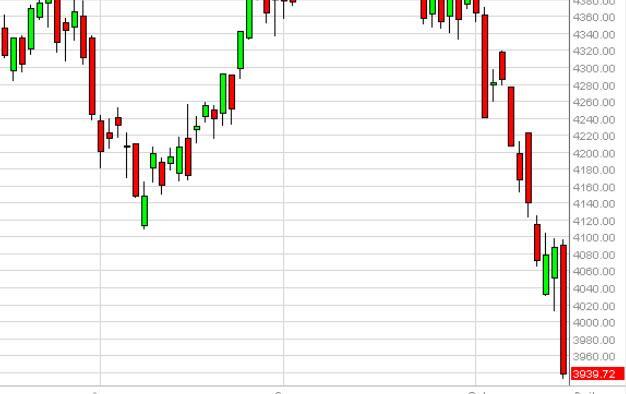 The Parisian index fell hard during the course of the day on Wednesday, slicing through the €4000 handle. Because of this, it appears of the Parisian index will continue to fall and as a result we are most certainly selling at this point in time every time this market rallies. A short-term bounce offer short-term selling opportunities, and we will sell the CAC again and again. We have no interest in buying the CAC until we get back above the 4150 level, something that does not look very likely anytime soon. With that, we are bearish.