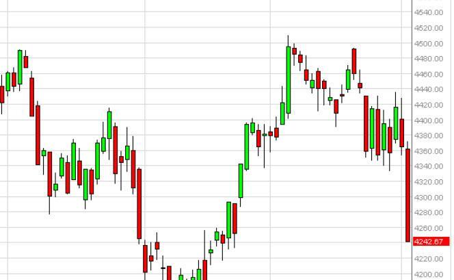 The Parisian index fell apart during the course of the day on Thursday, slicing through the €4340 level. This area was pretty significant as far as support was concerned, and as a result the fact that we broke through there was in fact a very negative. On top of that, we even went below the €4300 level, which was even more important in our opinion. That being said, we are sitting just above another cluster though, so quite frankly if you choose to sell the CAC, you may want to wait for short-term rally. As far as buying is concerned, we don’t have a set up yet.