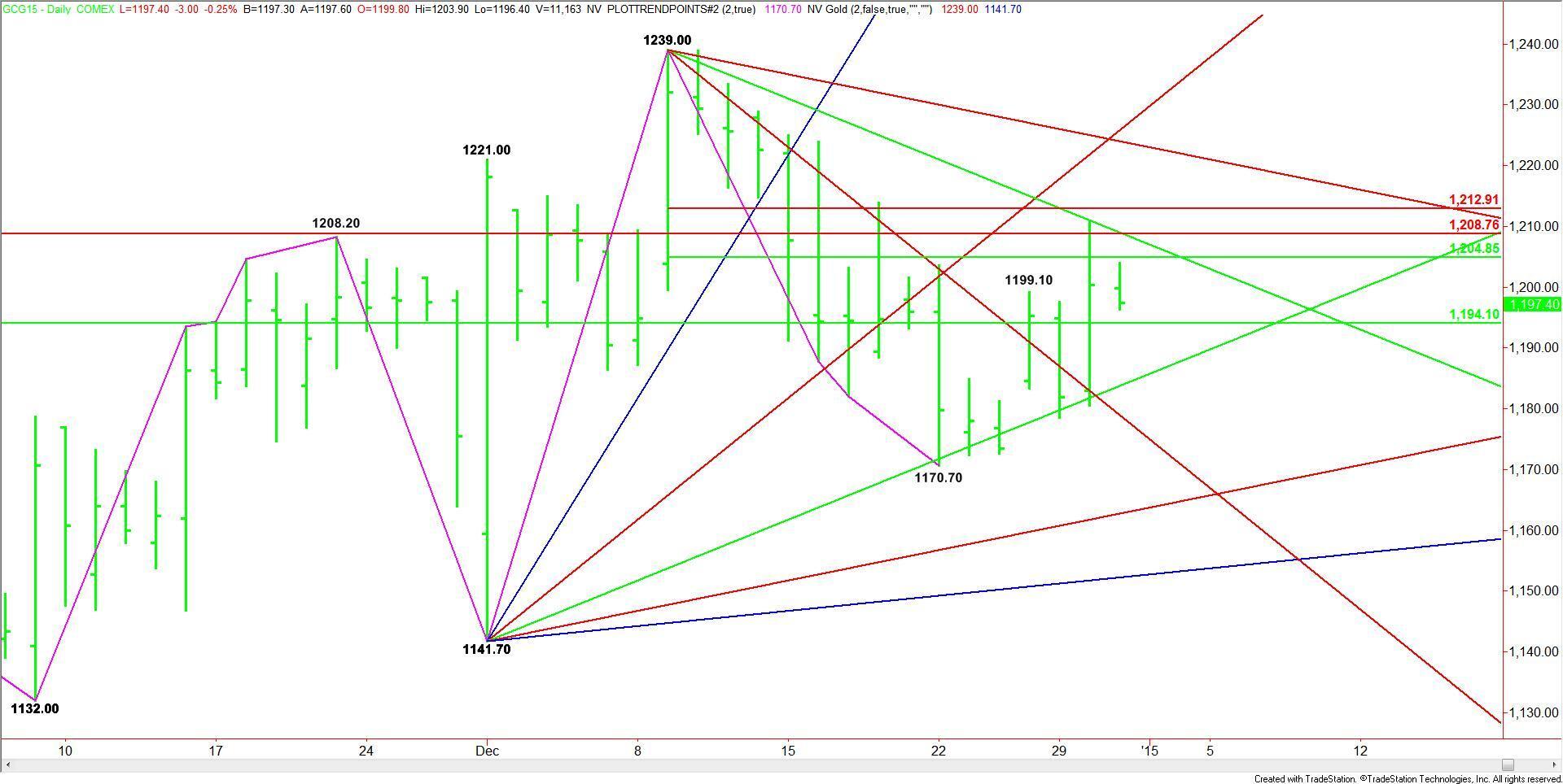 On the upside, the major downtrending angle that stopped the rally on Tuesday comes in at $1179.00. On the downside, the major uptrending angle that was tested successfully five out of the last seven sessions is at $1183.70. These two angles form a triangle chart pattern which suggests traders should expect some big volatility to begin the year or at least by January 8 – 9.