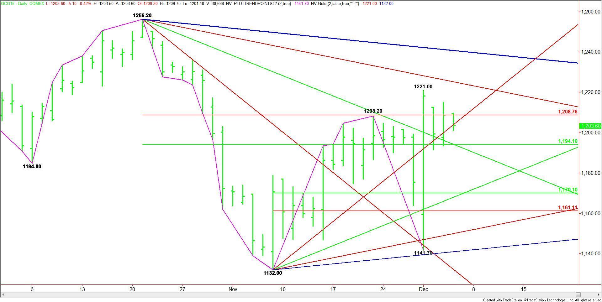 The tone of the market today will be determined by trader reaction to the angle at $1204.00.