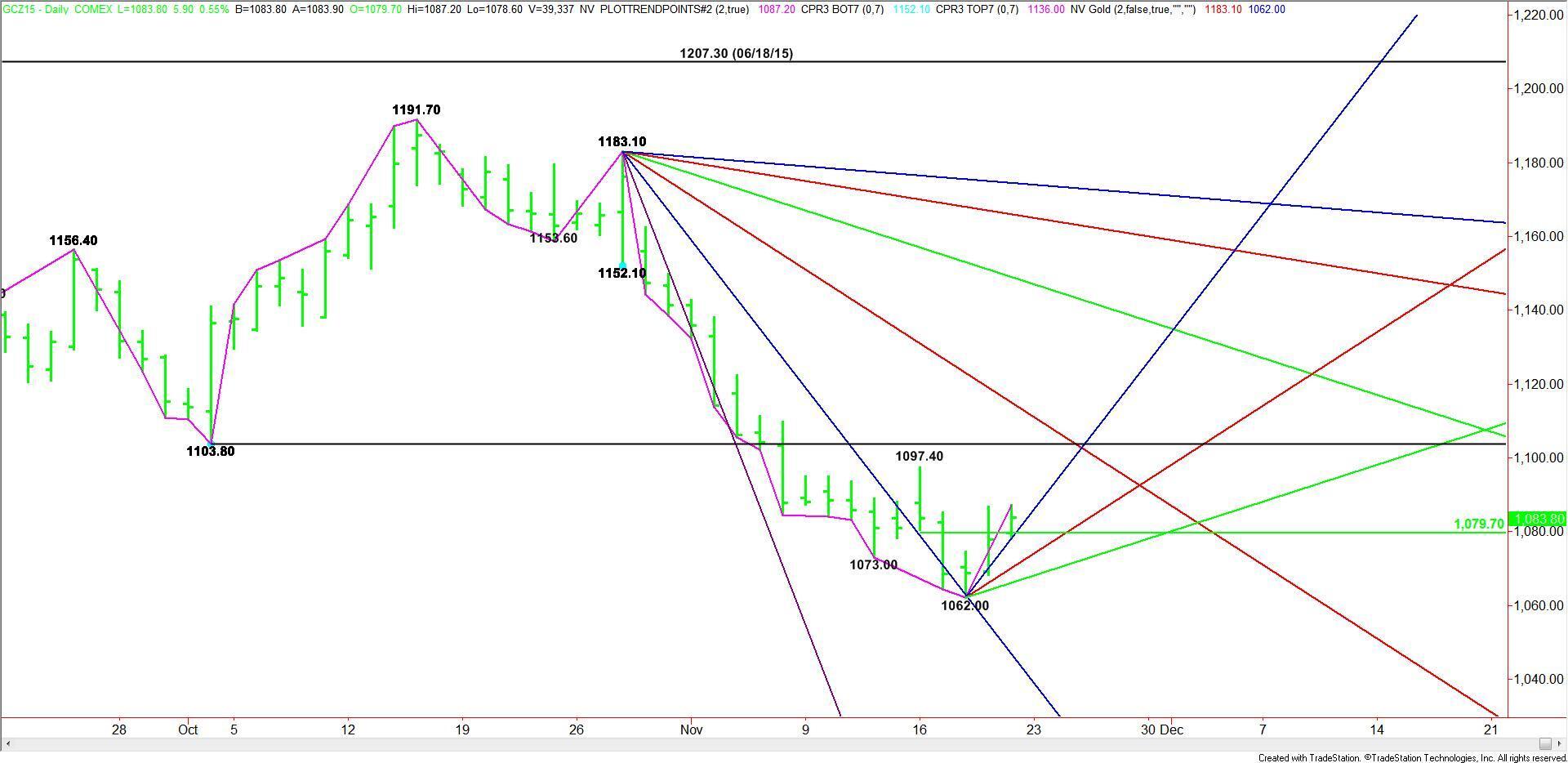 The main trend is down according to the daily swing chart. The new short-term range is $1097.40 to $1062.00. Its 50% level or pivot is $1079.70. The market is currently trading on the strong side of this pivot, giving gold an early upside bias.
