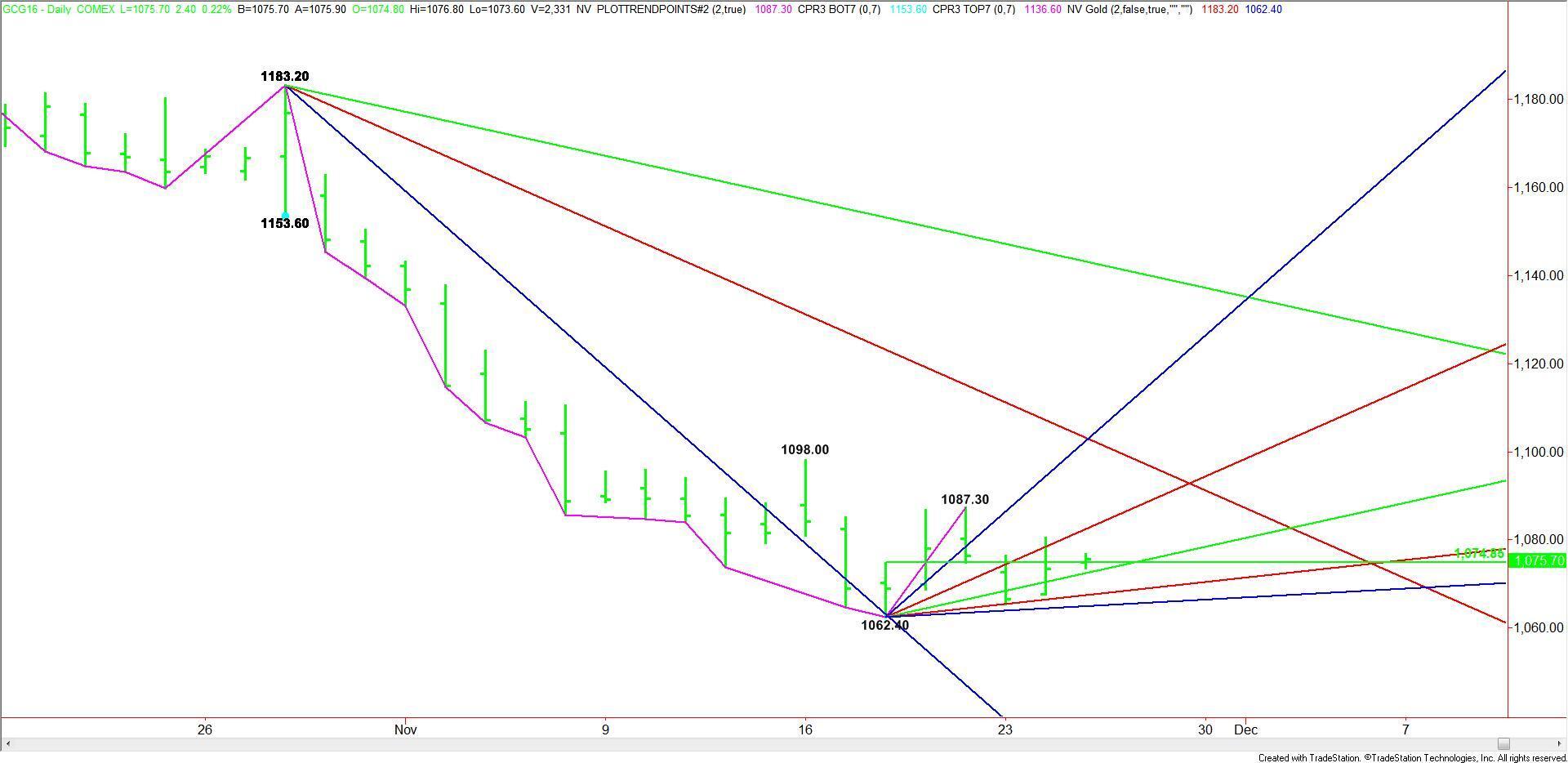 The minor range is $1062.40 to $1087.30. Its pivot or 50% level at $1074.80 is controlling the short-term direction of the market. Based on the close at $1073.30, the direction of the market today is likely to be determined by trader reaction to the pivot.