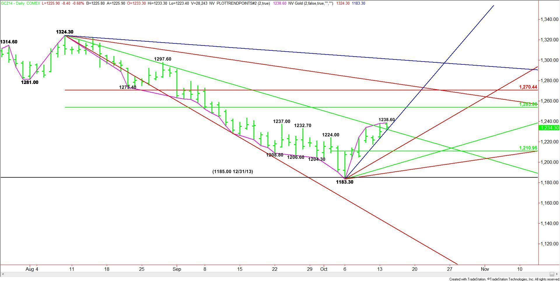 The tone of the market today will be determined by trader reaction to two levels. Look for a bearish tone if $1230.30 fails as support and a bullish tone to develop if traders can regain $1239.30.