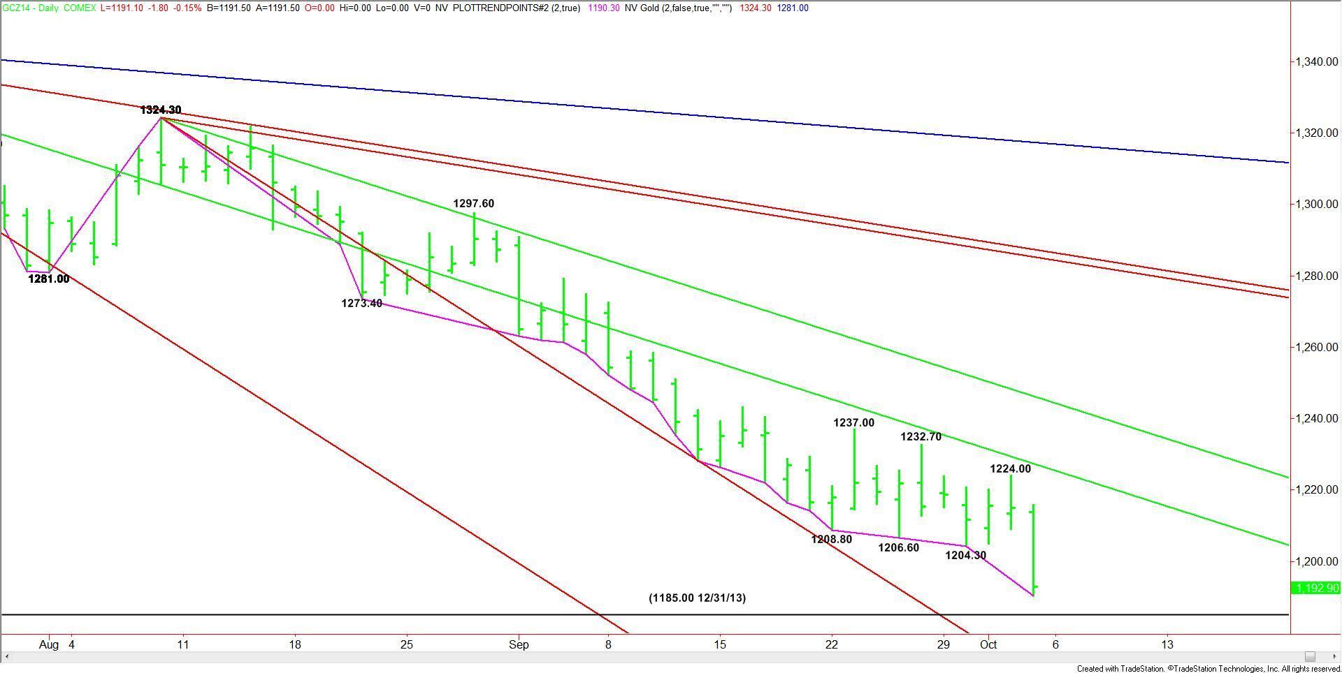 After several days of consolidation and attempts to breakout to the upside, December Comex Gold futures broke sharply to the downside on Friday, driven lower by the relentless strength of the U.S. Dollar.