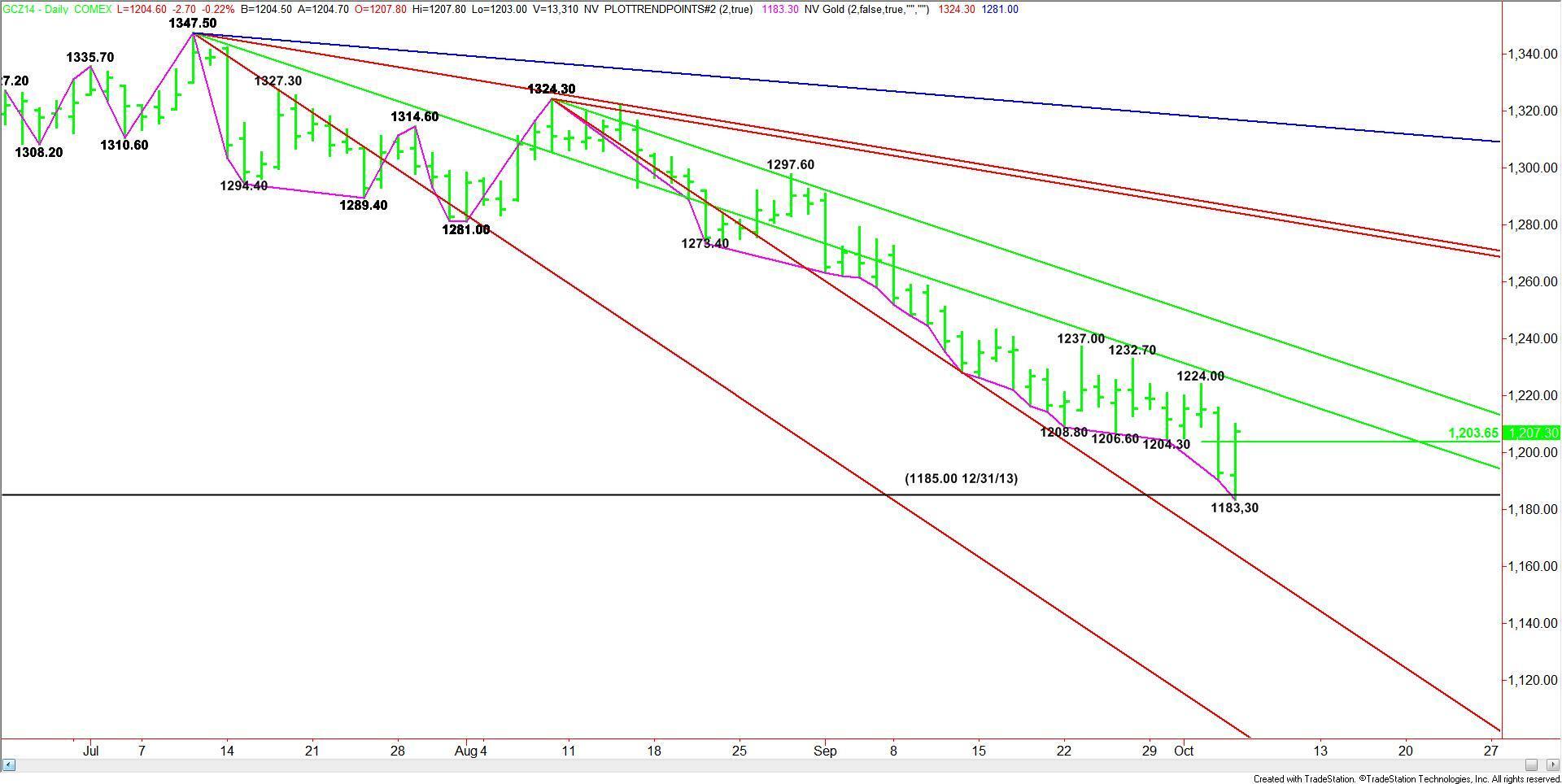 December Comex Gold futures took out the December 31, 2013 bottom at $1185.00, but buyers came in to support the market at $1183.30. Anyone that went