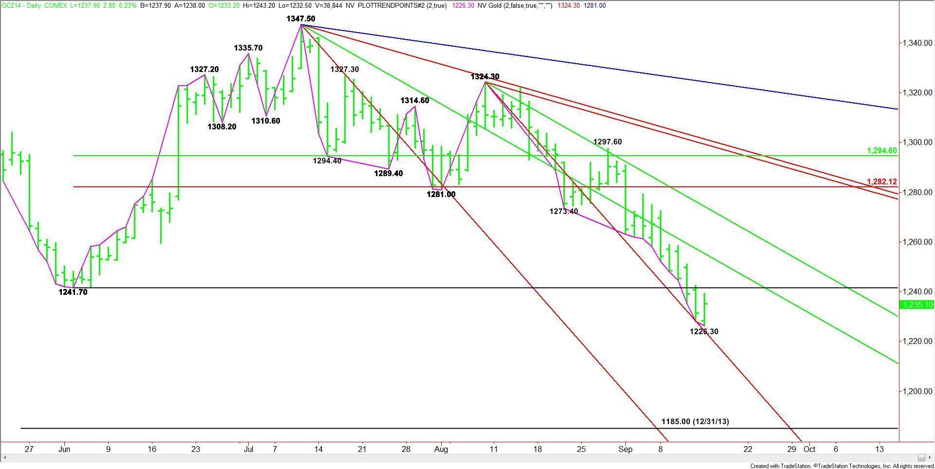 December Comex Gold futures traded lower on Monday which was expected because of the downside momentum on the close on Friday. Buyers came in at $1226.30,