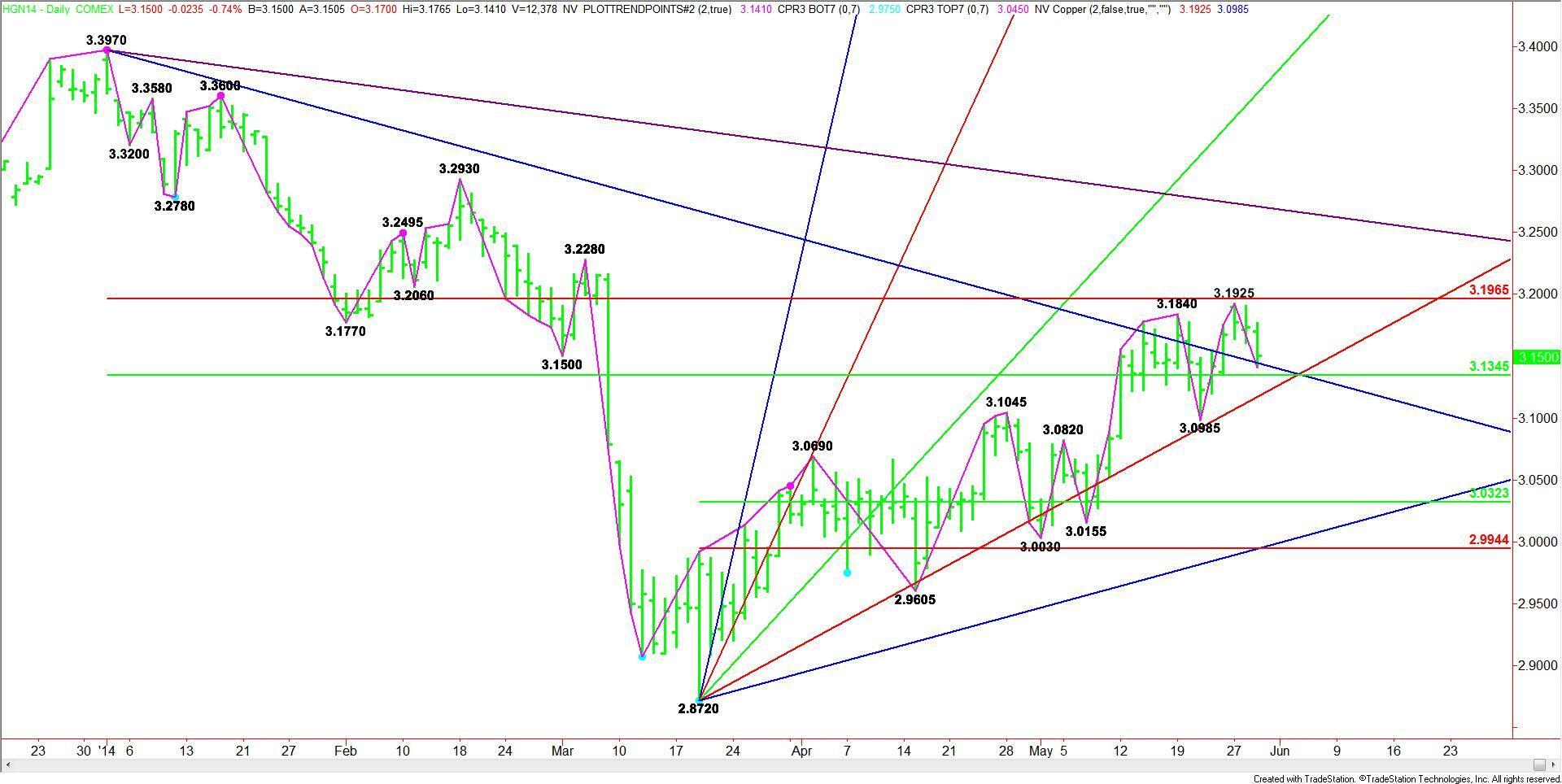 July Comex High Grade Copper futures traded lower in the pre-market session, making the high at 3.1925 a new main top. Combined with the previous main top