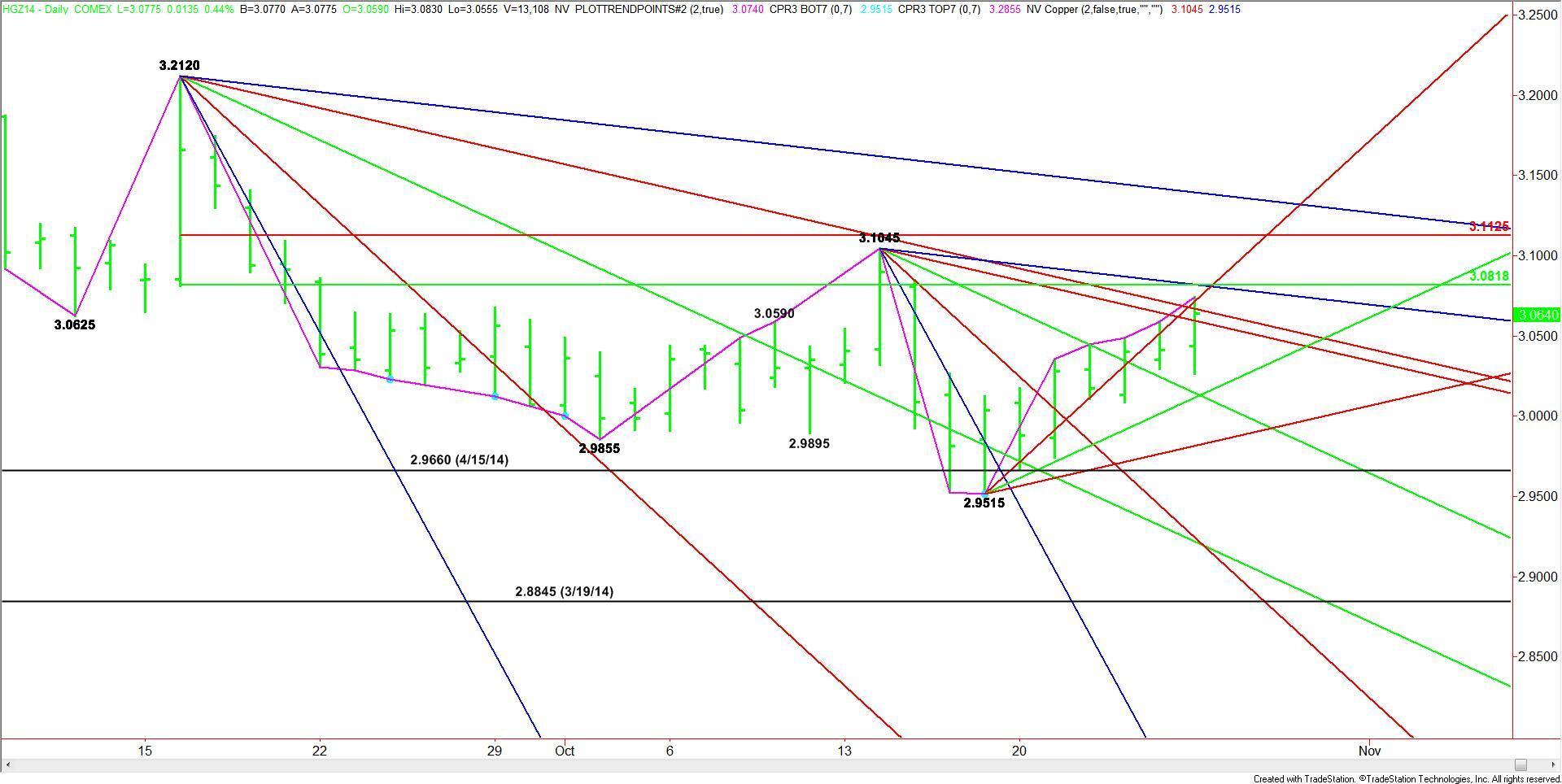 December Comex High Grade Copper futures closed in a strong position to breakout to the upside. The close at 3.0640 has put the market on the bullish side