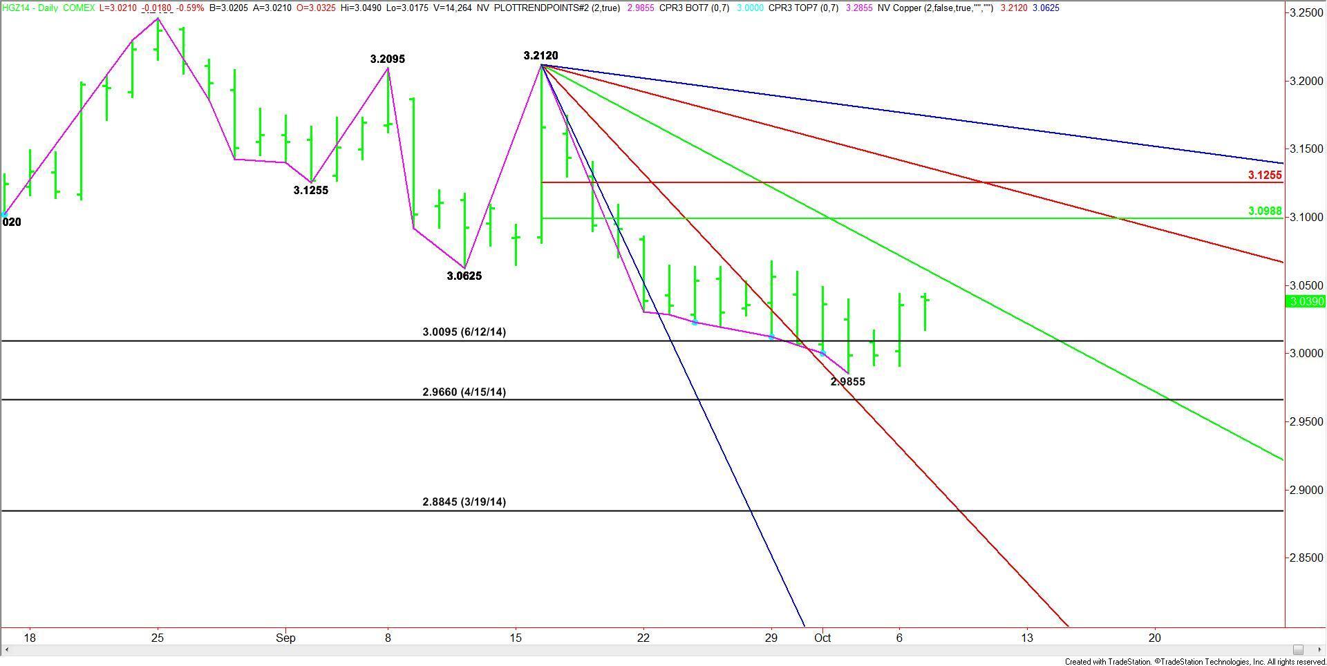 December Comex High Grade Copper futures edged higher on Tuesday, but traders still seemed a little tentative about playing the long side. Although the market has been moving sideways, or consolidating for about two weeks, the weakening global economy is likely to mean that short-covering rather than new buying is going to drive this market higher. Since the main trend is down, this is likely to set up the next shorting opportunity.
