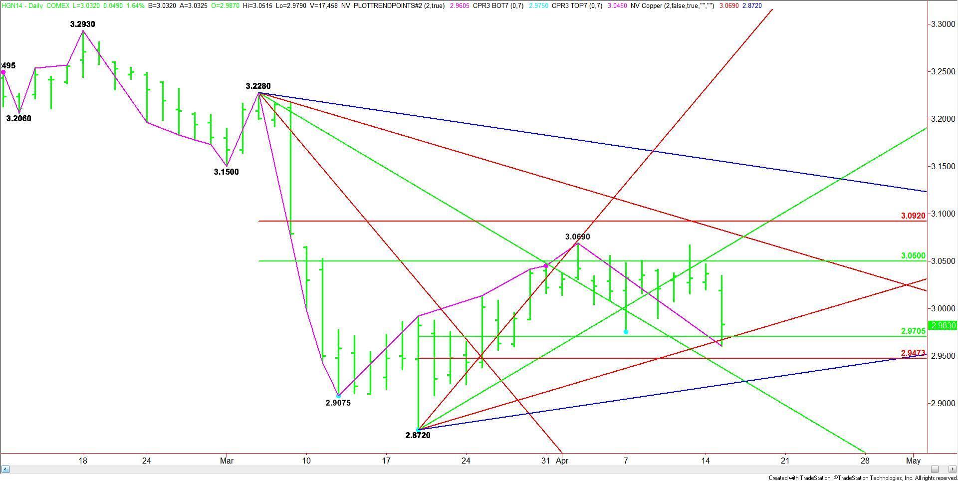 The short-term range is 2.8720 to 3.0690. Its retracement zone is 2.9705 to 2.9475. This area was tested on Tuesday when the market traded as low as 2.9605.
