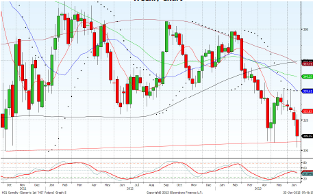 Copper CME July contract Daily Forecast - 24 June 2013Copper made it almost exactly to resistance at 310.80/00 & topped out as we retest 302 lows. Today’s outlook remains weak so a break lower could target late 2011 lows of 299.40. Failure here risks a test of long term Fibonacci support at 295.