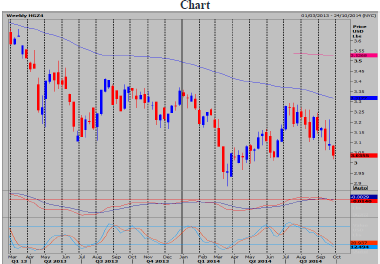 Copper Futures September contract Daily Forecast - 29 September 2014Copper has been in a bear trend for at least 18 months with no sign of a bottoming out. As long as we hold below 3040 today prices will remain under pressure to test last week’s low at 3020. Today’s low as I write is 3013 so be ready to go with a break below here to target June lows at 3010/09. Below 3008 should then target May lows at 3000/2998.