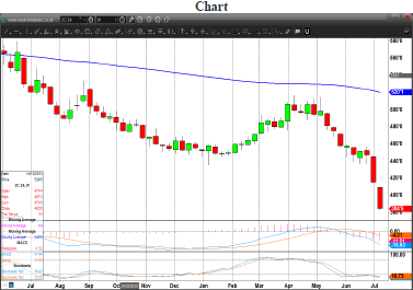 Although severely oversold, too risky to look for a bottom until we see a positive signal. Resistance at 387/88 then 391/392 & Friday’s high of 394/395. Only a close above here would be an initial sign of buyers returning.