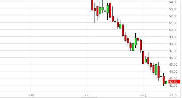 The light sweet crude market had a very interesting day on Friday, as we broke down and tested the $40 level. We bounced significantly though, and formed a hammer. The hammer sits just above the $42 level, so at this point in time we have to begin to wonder whether or not we aren’t going to get a significant bounce. After all, the $42 level was massively supportive in the past, and even sent the market looking for $60. At this point in time, you have to wonder who’s left to sell this market, and of course you have to recognize that liquidity is a little bit of an issue as we are still in the height of vacation season for most traders. Once we break above the top of the candle, we could see this market going to the $45 level first, and possibly even higher than that. If we broke the bottom of that hammer though, that would be horrifically negative.