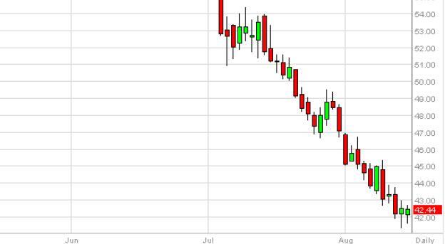 We do recognize that a break down below the lows for the session on Monday might be a selling opportunity, as it would more than likely send the Brent market looking for the $45 level given enough time. We believe that this market will continue to be volatile though matter what happens, so unless you have the appetite for such volatility we would recommend staying out of this market. Also, you have to keep in mind that we are at the end of the summer, and that of course affects the volume of this marketplace. With this, the favored trade will more than likely be found in the light sweet crude market.