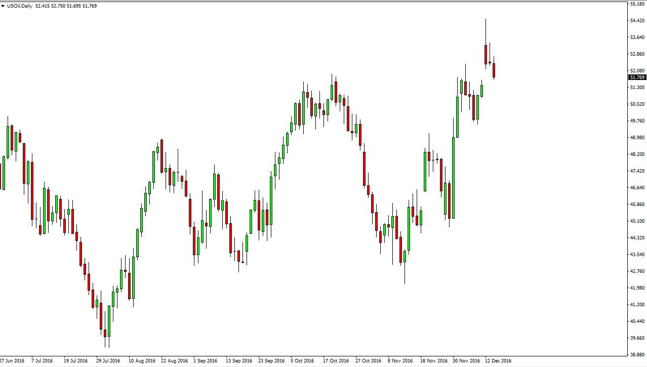 The WTI Crude Oil market initially tried to rally during the day on Wednesday but fell enough to basically fill the gap from the beginning of the week. That makes today very interesting, because if we continue to go lower that tells me that the market is not overly impressed by the OPEC and non-OPEC countries cutting production. Ultimately, there are structural issues that neither one of these entities can take care of. The Americans and the Canadians of course are not going to agree to any of this and as well prices rise, they will produce more. So having said this, if we breakdown below the $51 level, I feel it’s only a matter of time before we go much lower. Ultimately though, if we form a supportive candle I think we will probably try to reach the $54 level again. I am waiting for the close of business today to make my next move.