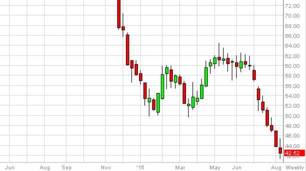 The Brent market initially rallied during the course the week but found enough resistance near the $52 level to turn things back around and form a shooting star. The shooting star of course is very negative, and if we can break down below the bottom of that, this market should continue dropping quite a bit. With this, we believe that the market has a massive amount of bearish pressure on it, but if we can break above the top of the shooting star, that would be very bullish sign and have us buying this contract for the meantime. We recognize there will be a lot of volatility anyways, so this point in time we are simply going to trade the market in whichever correction we break out of the range from this previous week. If we go higher though, we recognize $58 or so will probably be about as high as is market can go in the meantime. As far as falling is concerned, we don’t really know where the bottom is quite yet but we have certainly have to start thinking about potential value at these very low levels. However, keep in mind that trying to pick the bottom of the market is extraordinarily dangerous.