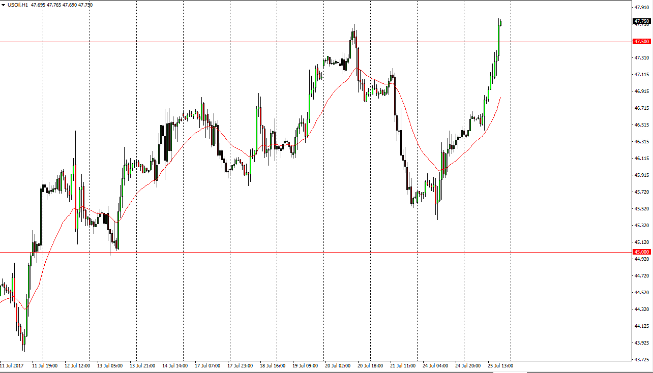 WTI Crude Oil The WTI Crude Oil market broke out to the upside during the day on Tuesday, clearing the $47.50 level which of course is a resistance