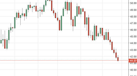 Brent markets initially tried to rally during the day as well, but also found quite a bit of bearish pressure to turn things back around and sliced through the $43 level. The $42 level below looks like a target, just as the $40 and the $38 level do as well. Ultimately, I think that any rally is going to struggle with the $46 level above, which was previously so supportive. That should now be resistance, and with this I think that it is only a matter of time before the sellers take over yet again. Keep in mind that the Brent market tends to be more affected buying the European Union and the United Kingdom, both of which are areas of concerns at the moment. With this, it makes sense that this market will probably fall faster than the WTI Crude Oil market, although I believe that neither one of them is a market that I want to start buying, so having said that I think you could sell either and probably get very similar results, but believe Brent is probably overall a little bit more in danger currently with everything that we are seeing coming out of the continent.