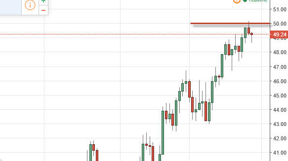 Brent markets fell initially during the course of the day on Friday as well, but turned around to form a bit of a hammer. The hammer of course is a very bullish sign but we also had a shooting star from the previous session, so looks as if we are going to get a lot of choppiness and volatility in this general vicinity. Because of this, it’s likely that we will continue to struggle in this area, but if we can break above the top of the shooting star from the Thursday session, it’s likely that the market will then reach towards the $54 level above. A break above there becomes more or less a longer-term “buy-and-hold” scenario just as it is in the WTI Crude Oil market.