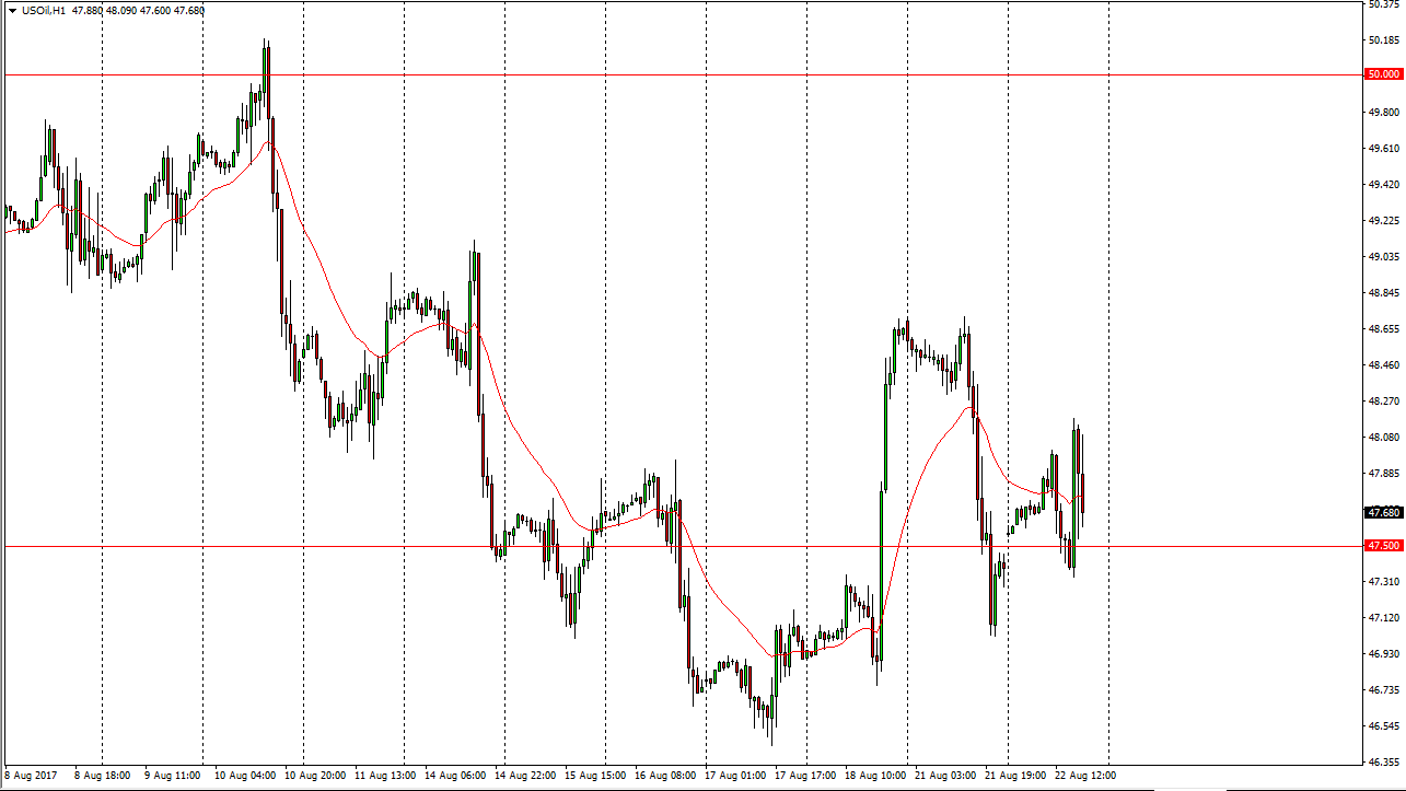 The Brent market chopped around during the Tuesday session as we await the Crude Oil Inventories figures today. I think it is very interesting to see what happens next, as the number of course will be a major influence on where we go next. If we can break above the $52.50 level, that would be a very bullish sign but I think there is a massive amount of resistance that would probably come in between here and there. Alternately, if we break down below the $51 level, I think the market will continue to go lower. Either way, I think you can count on a significant amount of volatility in a market that has a lot of crosswinds.