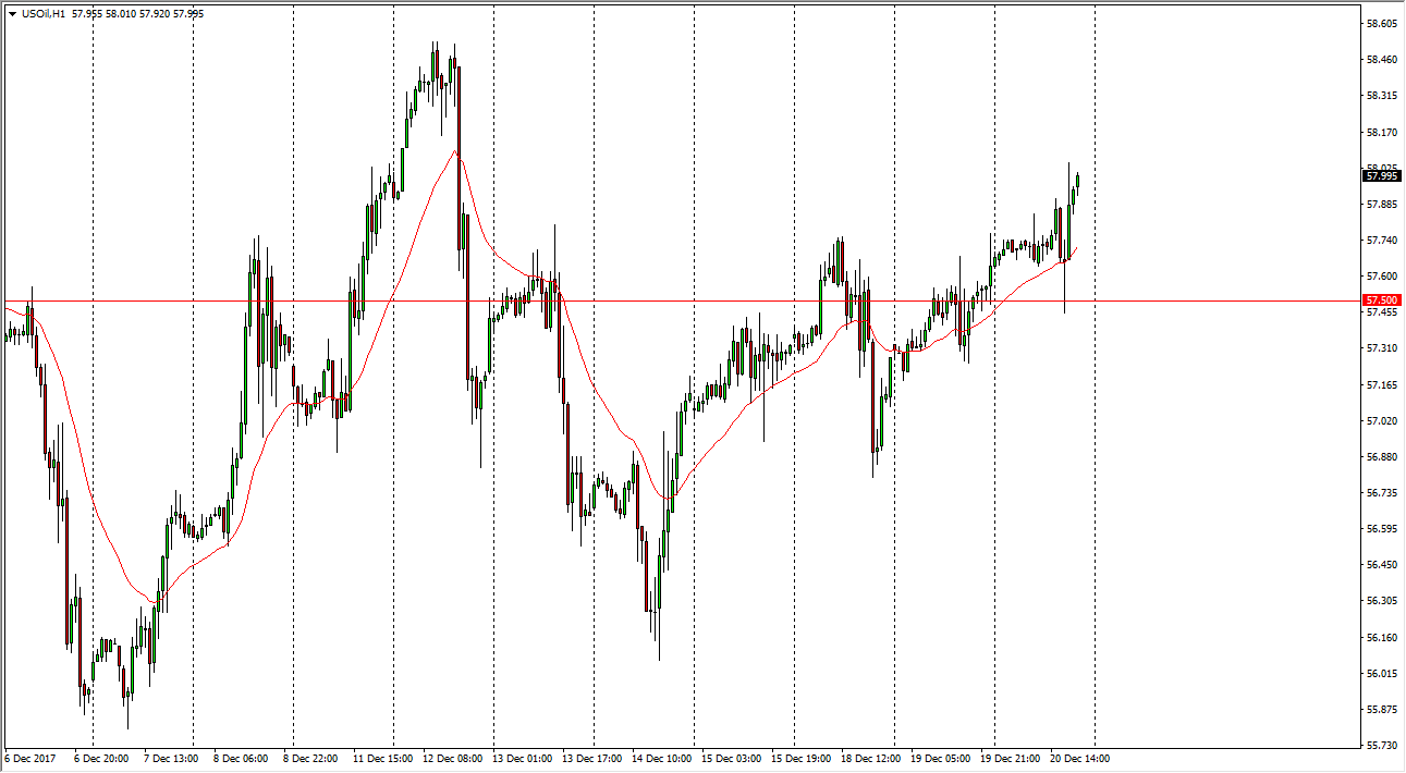 The WTI Crude Oil market initially went sideways during the trading session on Tuesday, pulled back to reach towards the $57.50 level, and then rallied to the upside, reaching towards the $58 handle. If we can break above the $58 level significantly, I think the market then goes to the $58.50 level, and then eventually the $59 level after that. I expect we will see a lot of volatility due to the lack of liquidity, but in general looks as if the buyers are trying to make a bit of a statement. I think that you need to be quick to take your profits in this market, as there will be a lot of noise in this market, but I think that the market will be difficult to hang onto a trade in, so keep that in mind. Volatility continues to be the biggest factor.