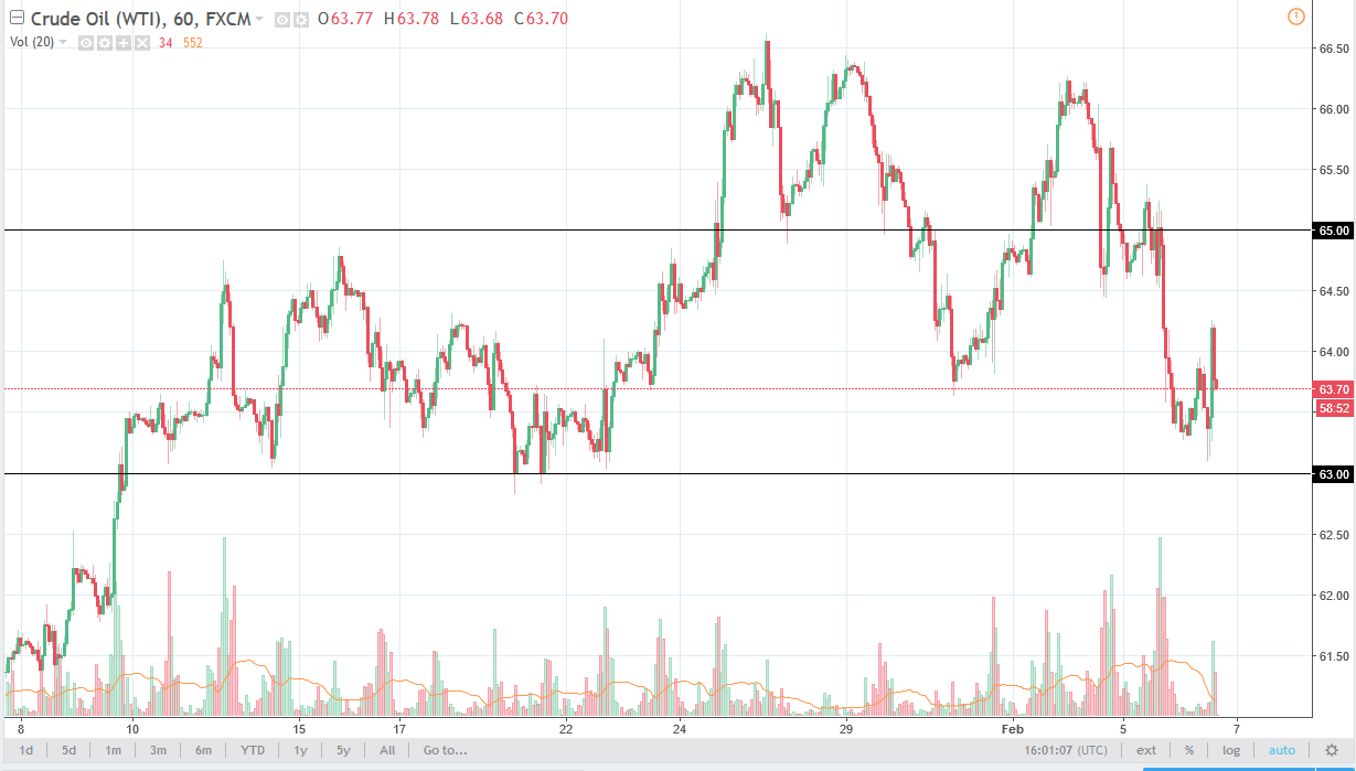 The WTI Crude Oil market fell significantly during the trading session on Tuesday, reaching down towards the $63 level. That’s an area that has been supportive in the past, so it’s not a surprise at all that we have seen strength into the market, reaching towards the $65 level. I think at this point, we will struggle to get above $65 initially, but eventually we could go as high as $66 level. I think the market will continue to be very volatile, and I think you should keep your position size a bit small, as the volatility will probably only pick up from here.