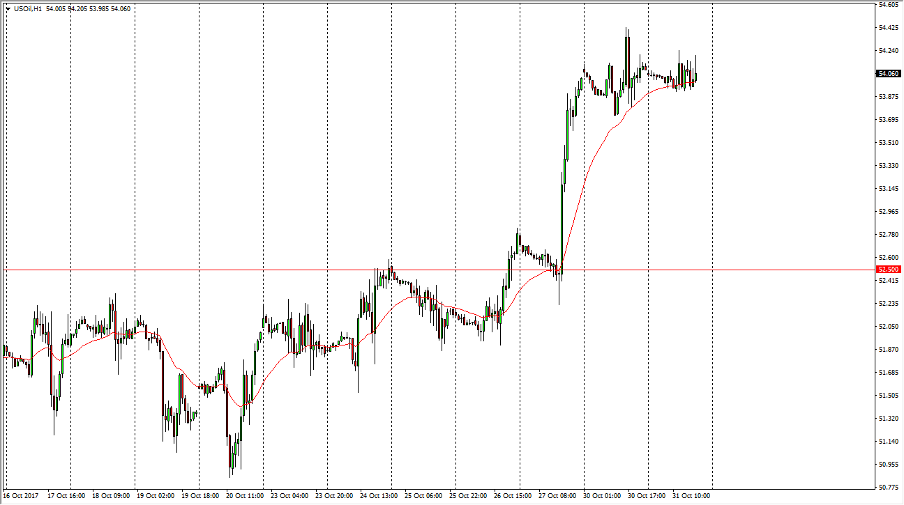 WTI Crude Oil The WTI Crude Oil market went back and forth during the day on Tuesday, using the $54 level as a bit of a magnet. I believe that the market