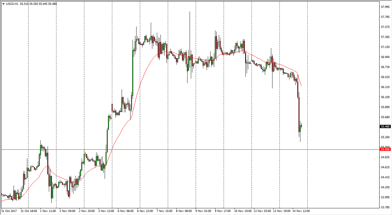 WTI Crude Oil The WTI Crude Oil market drifted a little bit lower during the trading session on Tuesday, and then fell hard. The $55 level underneath has