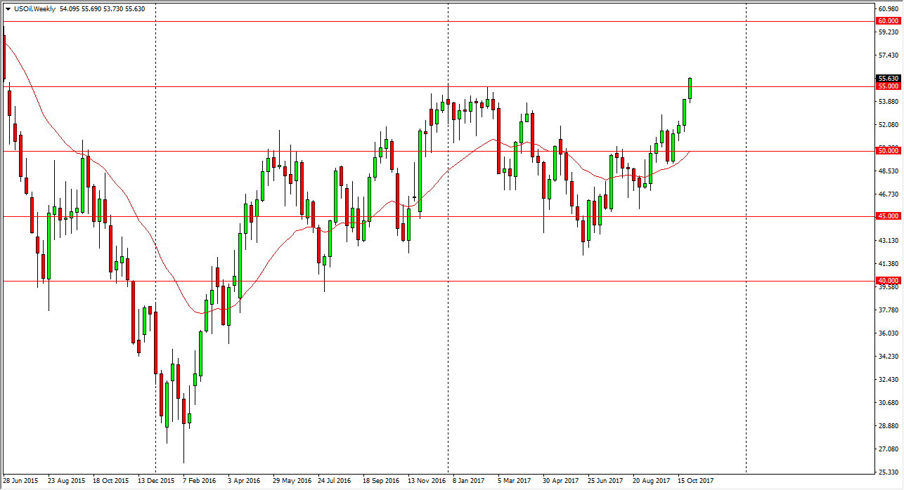 WTI Crude Oil The WTI Crude Oil market rallied significantly during the week, slicing through the $55 level. That is an area that is massively resistive,