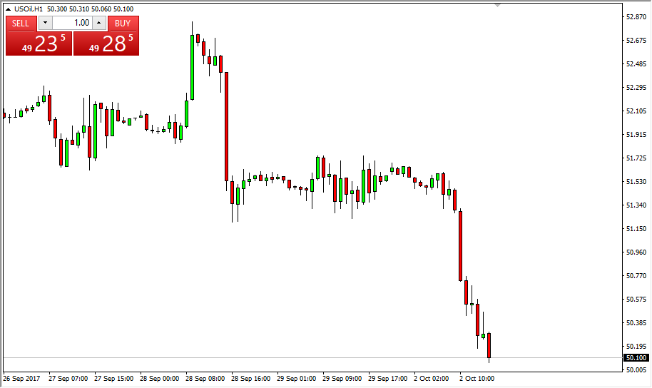WTI Crude Oil The WTI Crude Oil market fell rather hard during the trading session on Monday, dropping towards the $50 level. This is an area that