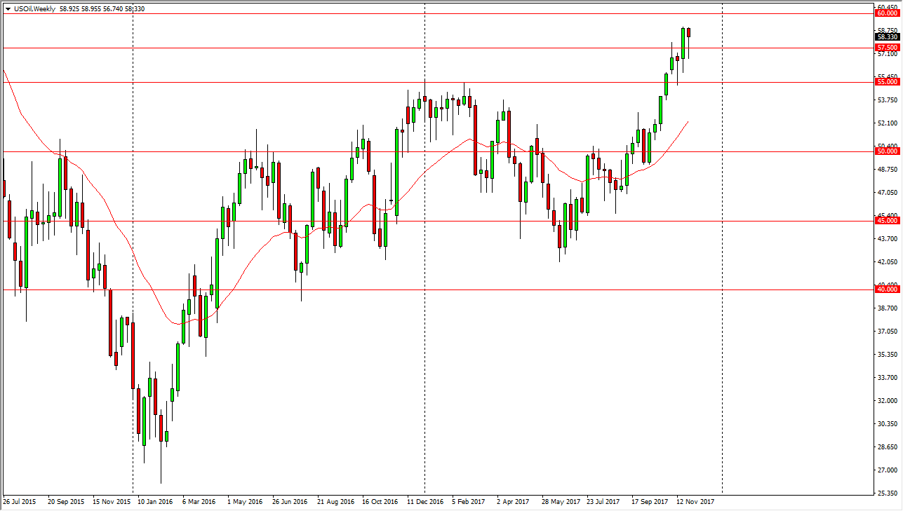 WTI Crude Oil The WTI Crude Oil market has initially fallen during the week, but found enough support underneath the $57.50 level to turn around and form