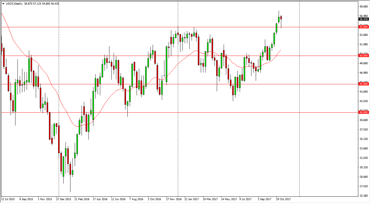 WTI Crude Oil The WTI Crude Oil market fell during most of the week, but turned around at the $55 level, showing signs of support and end up forming a