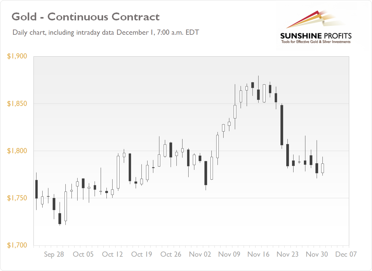 Gold is 0.6% higher this morning, as it trading around 1% below the $1,800 price level. What about the other precious metals? Silver is 0.1% higher, platinum is 1.7% higher and palladium is 1.8% higher. So precious metals’ prices are higher this morning.