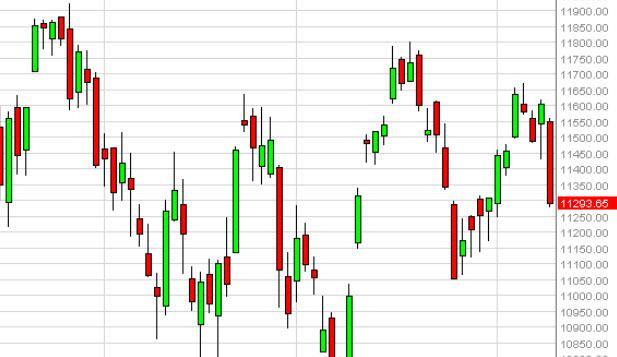 The DAX fell hard during the session on Tuesday, slicing through the bottom of the hammer from Wednesday. Because of this, it appears of the market is going to reach for more significant support, probably somewhere near the €11,200 level, where we had seen triple hammers form on the daily chart. With that, it’s only a matter time for the buyers get involved in that general vicinity, and as a result we would be buying on supportive candles and of course bounces. We also believe that the €11,000 level below is going to be massively supportive.