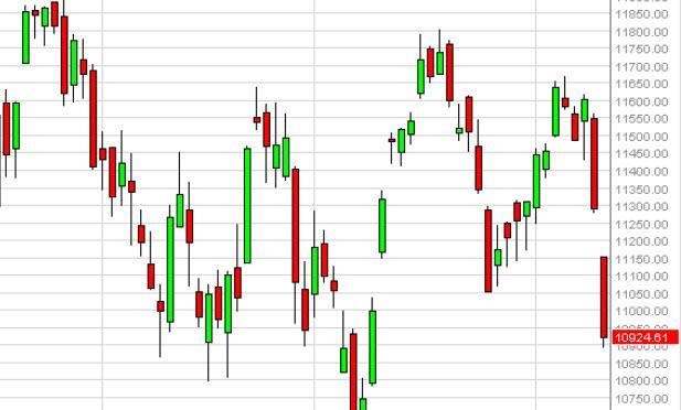 The DAX as you can see gapped lower at the open on Wednesday. We broke down through the €11,000 level, so we feel that the DAX will probably continue to