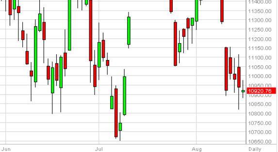 The DAX as you can see gapped a little bit lower and then banged around during the session on Tuesday. The 11,000 level above is offering a bit of