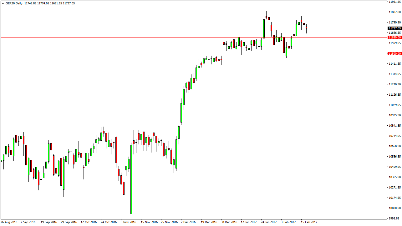 The German index formed a hammer on Friday, just as we did on Thursday and Wednesday. I believe it’s only a matter of time before the buyers get involved and start pushing to the upside again. I think that the €11,650 level should be supportive, and with this being the case I’m more than willing to start buying on either the bounce or break above the Friday candle. The market should then eventually reach towards the €12,000 level, which has a certain amount of psychological significance. Selling isn’t even a thought at this point.