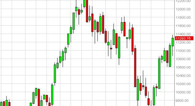 The DAX initially fell during the course of the week, falling down below the €11,000 level. Turning things around was the next move, as we did up forming a bit of a hammer. If we can break above the €11,400 level, the market should then go higher and reach towards the €11,800 level and beyond. We believe that the bounce recently has been rather significant, and the volatility is picking up as the bullish pressure continues to increase. We have no interest in selling this market as the DAX looks very well supported.