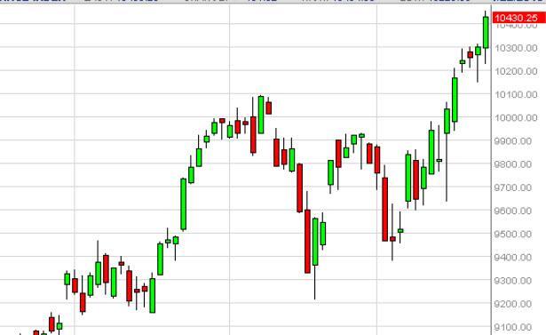 The DAX as you can see initially fell during the course of the session on Thursday, but found enough support based upon the hammer from the previous day to go much higher. On top of that, the European Central Bank initiated further quantitative easing, and as a result the value of the Euro continues to drop. With that being the case, the market appears that it is continuing its way higher, and as a result we are buying pullbacks in the DAX in order to take advantage of what should now be another leg higher for European stock indices in general.