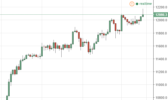 The German index initially trying to rally during the David found enough resistance nearly €12,200 level to turn around for a bit of a shooting star.
