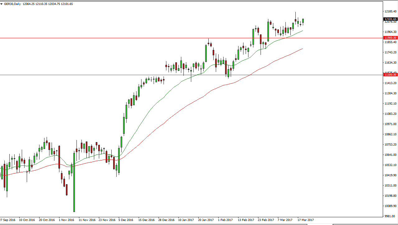 The German index fell initially during the day on Tuesday, but found enough support near the 12,000 handle to turn things around and form a positive candle again. Because of this, the market should find plenty of support underneath. I believe that the market will then reach towards the 12,200 level above. I think a break above there is inevitable, as we have such a steady and reliable uptrend going at the moment. Ultimately, I think we will continue to be in more or less a “buy-and-hold” type of situation. I have no interest in selling this market.