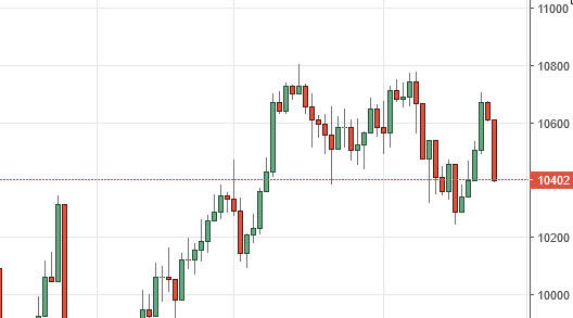 The DAX fell massively during the course of the session on Monday, crashing into the €10,400 level to test the support. I think there is plenty of support