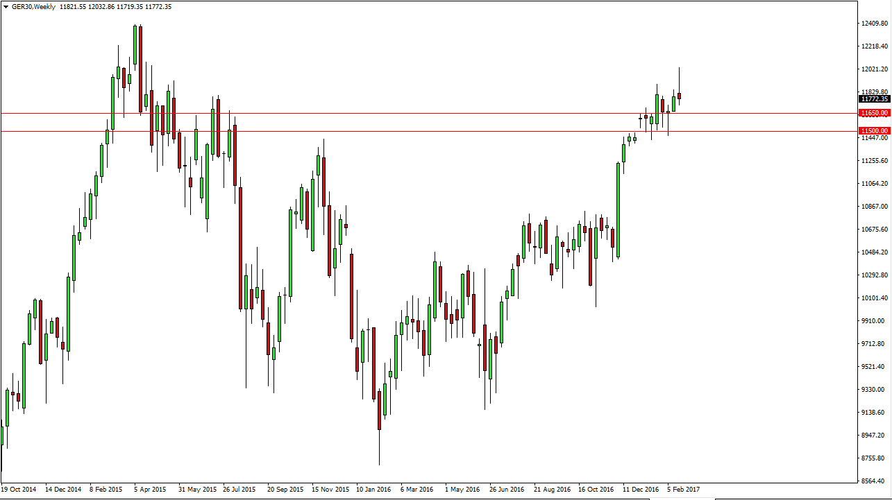 The German index initially tried to rally during the week but fell enough to form a shooting star. This tells me that the 12,000 level is going to be