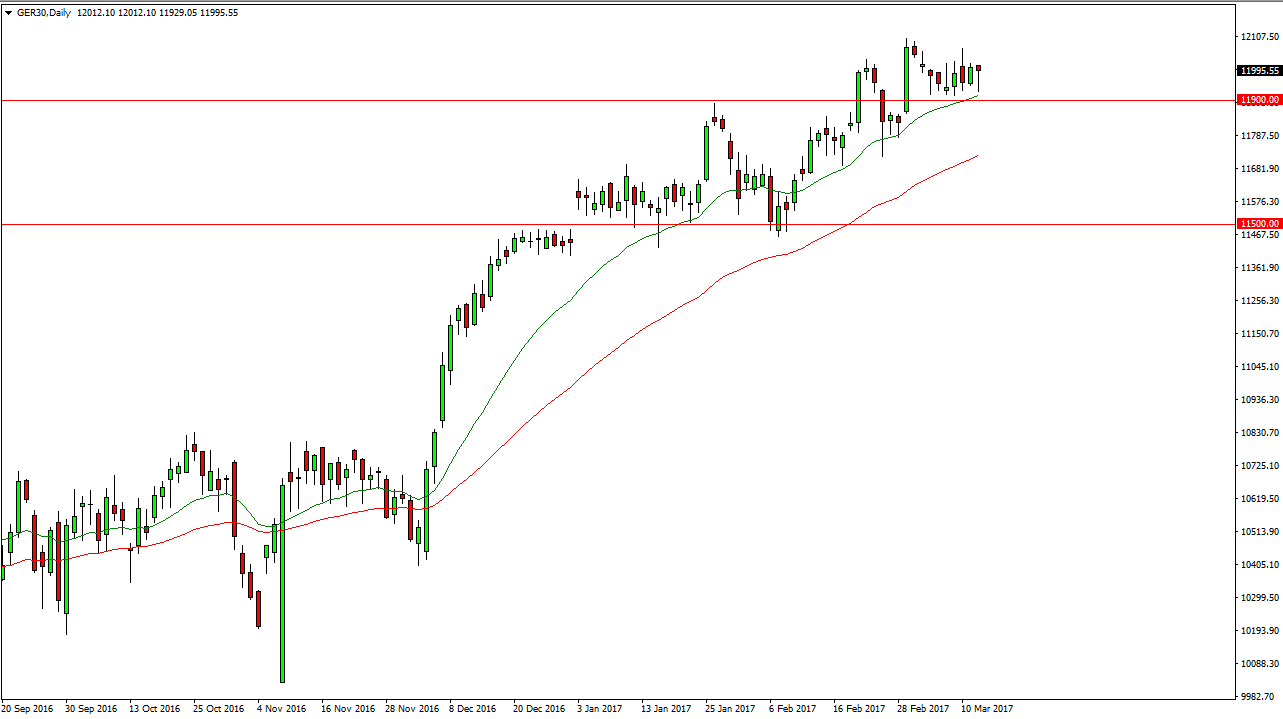 The German index initially fell during the day on Tuesday, testing the 20-day exponential moving average. We also found support at the €11,900 level again