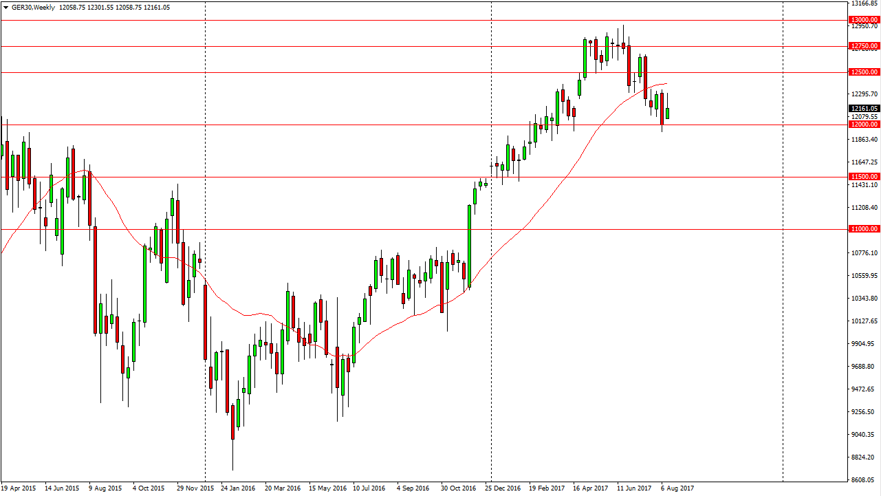 The DAX rallied during the week, but gave back some of the gains. Most important, it appears that the gap at the €12,000 level on the daily chart is